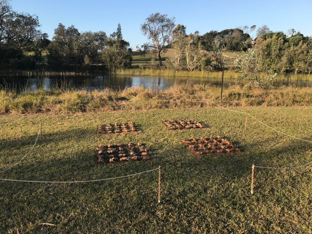 86 Critical, Gallery 7, Byron Bay, 2022. Porcelain, sand, mangrove leaves, lomandra leaves.