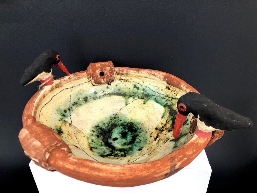 These robust, handbuilt birdbaths are complete one offs. They are either made to hang, or come freestanding with a pedestal base for ease of positioning.
